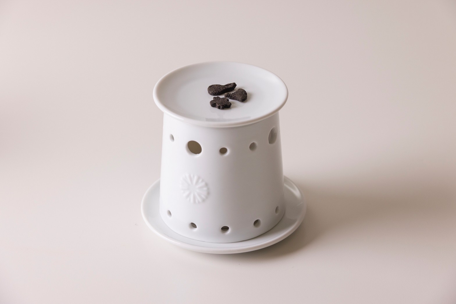 見た目のかわいさがとても目を引くお香で、こちらも練香と同様、直接火をつけるのではなく、間接的な熱で温めて香りを楽しみます。